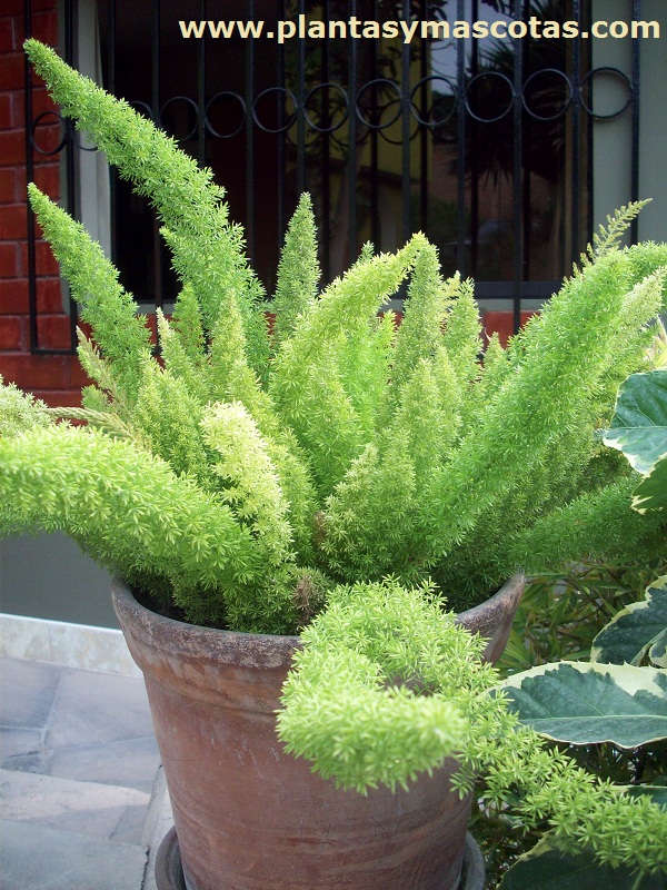 Esta planta tiene un denso follaje y recibe el nombre de cola de zorro debido a la forma de sus tallos. Puede alcanzar una altura de 90 cm. Sus flores son muy pequeñas de color blanco rosado las que luego se convierten en brillantes bayas rojas. Es una planta resistente y fácil de cuidar.